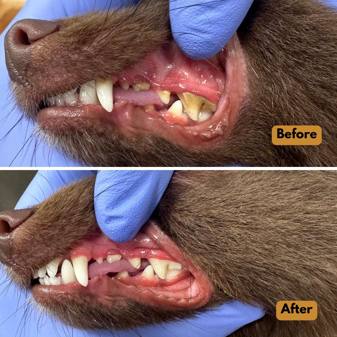 Cuidamos la salud oral de tu mascota con tratamientos dentales seguros y sin estrés, sin necesidad de anestesia. Nuestra limpieza y pulido a fondo ayudan a prevenir la placa, proteger las encías y mantener su sonrisa brillante y saludable
